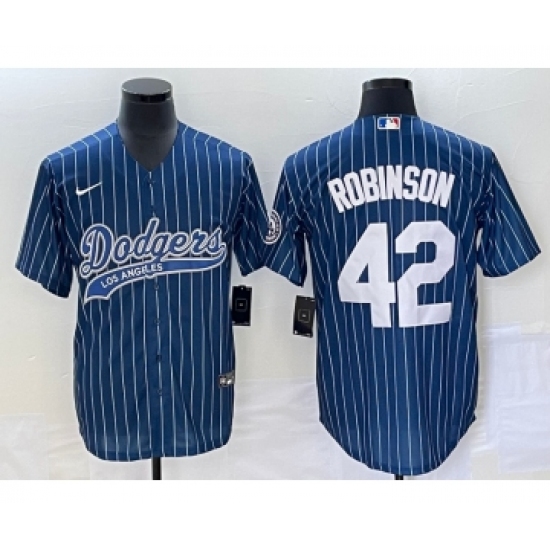 Men's Los Angeles Dodgers #42 Jackie Robinson Blue Pinstripe Cool Base Stitched Baseball Jersey