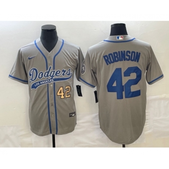 Men's Los Angeles Dodgers #42 Jackie Robinson Number Grey Cool Base Stitched Baseball Jersey