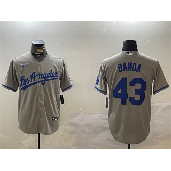 >Men's Los Angeles Dodgers #43 Anthony Banda Grey Cool Base Stitched Baseball Jersey