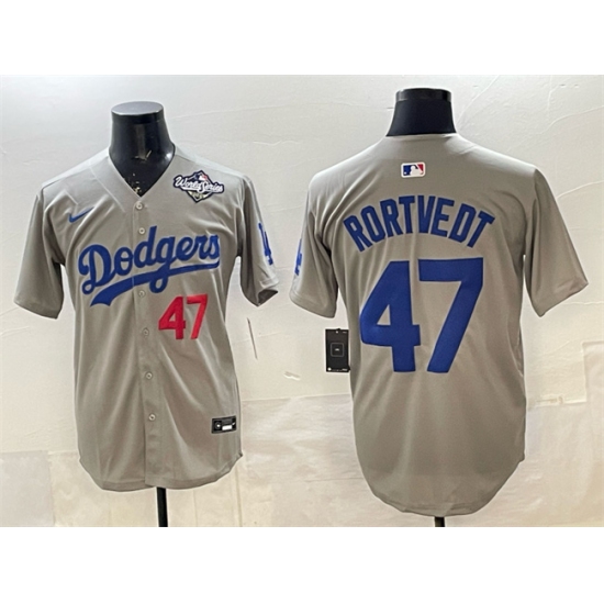 Men's Los Angeles Dodgers #47 Ben Rortvedt Gray 2025 World Series Limited Stitched Baseball Jersey
