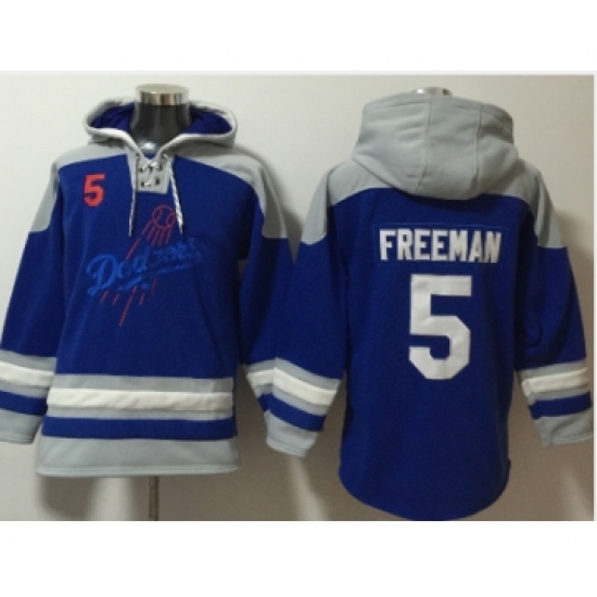 Men's Los Angeles Dodgers #5 Freddie Freeman Blue Ageless Must Have Lace Up Pullover Hoodie