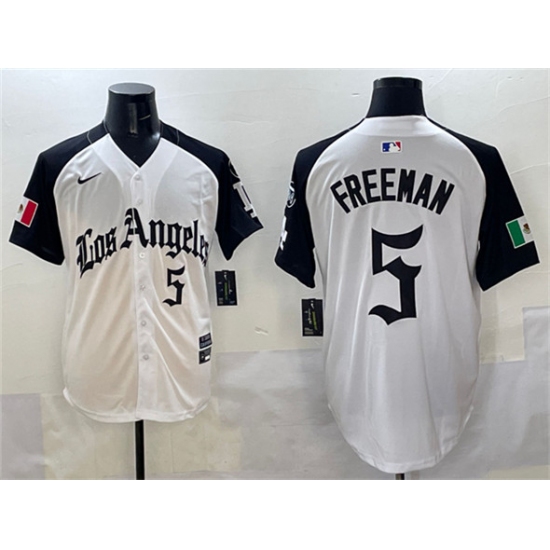 >Men's Los Angeles Dodgers #5 Freddie Freeman White Black Mexico 2025 LA Gothic Style With Fernando Vapor Premier Limited Stitched Baseball Jersey