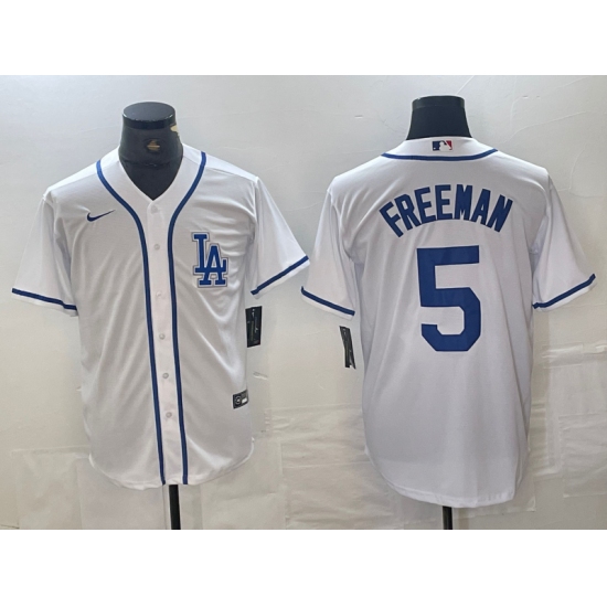 >Men's Los Angeles Dodgers #5 Freddie Freeman White Cool Base Stitched Baseball Jersey