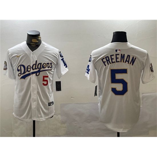Men's Nike Los Angeles Dodgers #5 Freddie Freeman White Stitched Baseball Jersey