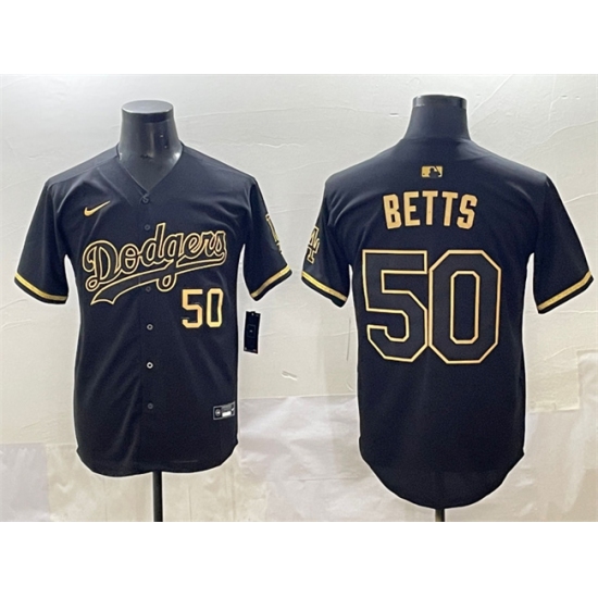 Men's Los Angeles Dodgers #50 Mookie Betts Black Gold Limited Stitched Jersey