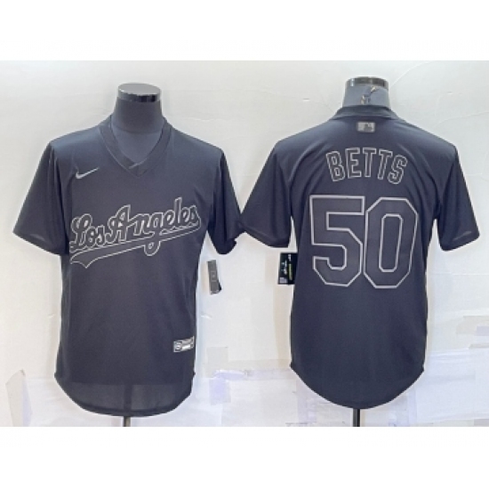 >Men's Los Angeles Dodgers #50 Mookie Betts Black Pullover Turn Back The Clock Stitched Cool Base Jersey