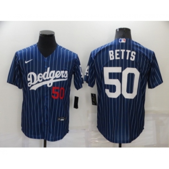 Men's Los Angeles Dodgers #50 Mookie Betts Blue Pinstripe Stitched MLB Cool Base Nike Jersey