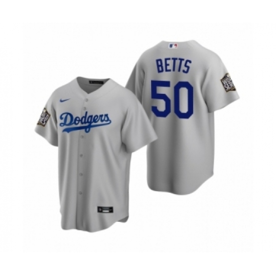 Men's Los Angeles Dodgers #50 Mookie Betts Gray 2020 World Series Replica Jersey