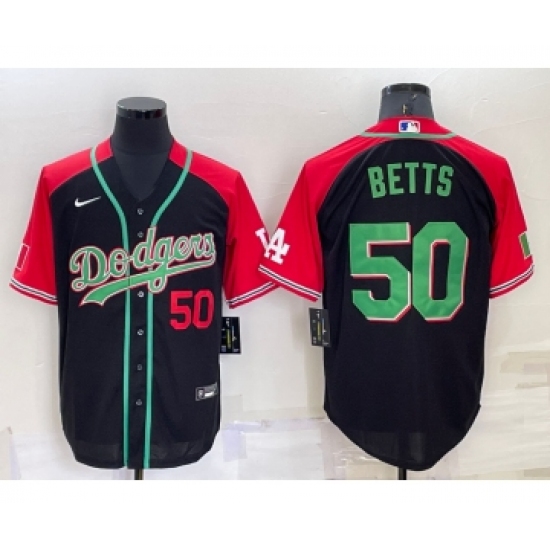 >Men's Los Angeles Dodgers #50 Mookie Betts Number Black Mexican Heritage Culture Night Nike Jersey