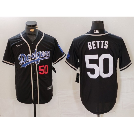 Men's Los Angeles Dodgers #50 Mookie Betts Number Black White Cool Base Stitched Jersey
