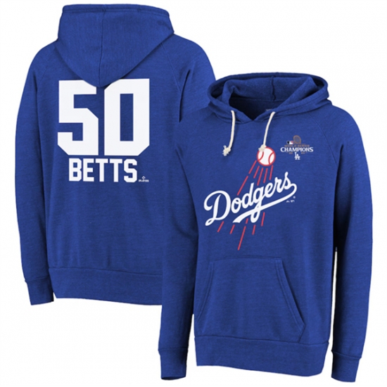 Men's Los Angeles Dodgers #50 Mookie Betts Blue Ageless Must Have Lace Up Pullover Hoodie
