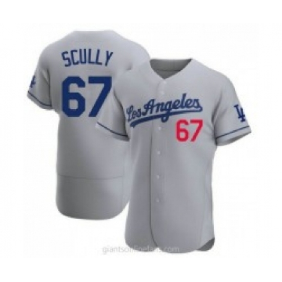Men's Los Angeles Dodgers #67 Vin Scully Gray Stitched MLB Flex Base Nike Jersey
