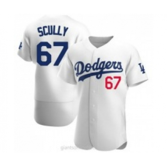 >Men's Los Angeles Dodgers #67 Vin Scully White Stitched MLB Flex Base Nike Jersey