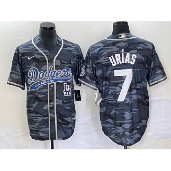 Men's Los Angeles Dodgers #7 Julio Urias Gray Camo Cool Base Stitched Baseball Jersey