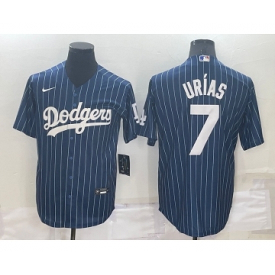 >Men's Los Angeles Dodgers #7 Julio Urias Navy Blue Pinstripe Stitched MLB Cool Base Nike Jersey