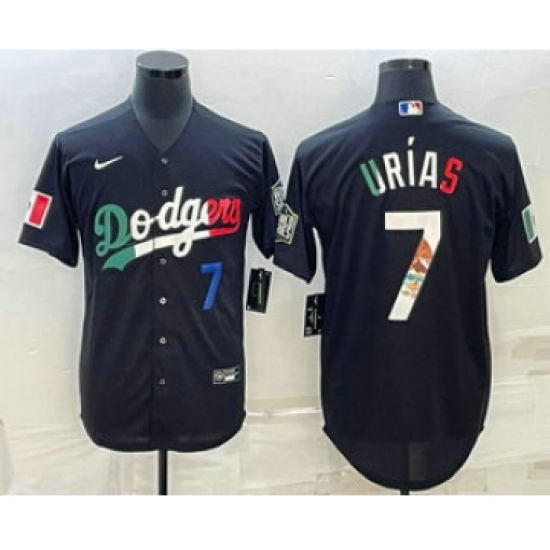 >Men's Los Angeles Dodgers #7 Julio Urias Number Black Mexico 2020 World Series Cool Base Nike Jersey