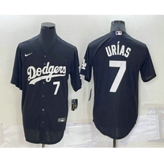 Men's Los Angeles Dodgers #7 Julio Urias Number Black Turn Back The Clock Stitched Cool Base Jersey