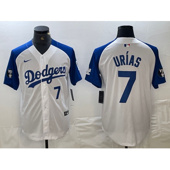 Men's Los Angeles Dodgers #7 Julio Urias White Blue Fashion Stitched Cool Base Limited Jersey