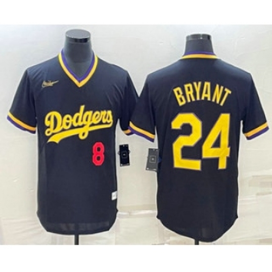 >Men's Los Angeles Dodgers #8 #24 Kobe Bryant Number Black Stitched Pullover Throwback Nike Jersey1