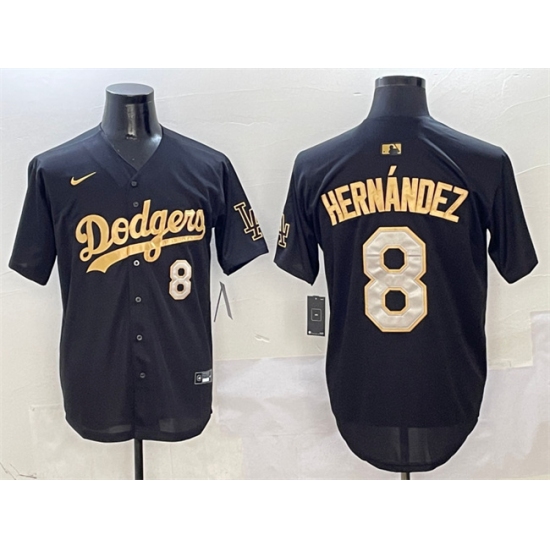 >Men's Los Angeles Dodgers #8 Enrique Hernandez Black Gold Limited Stitched Baseball Jersey