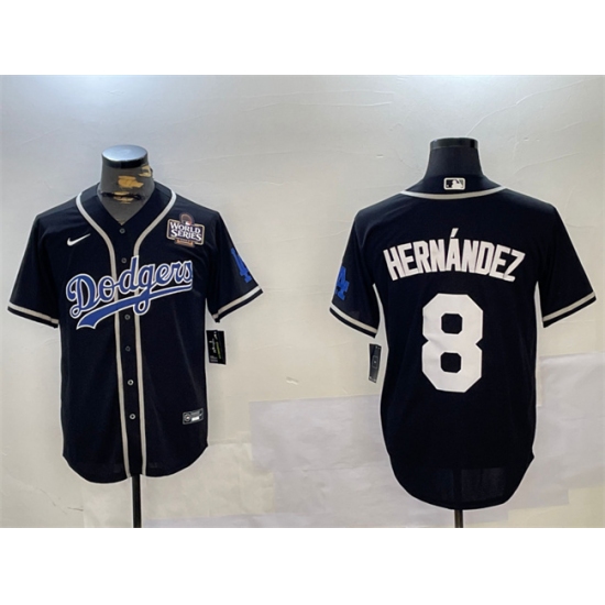 >Men's Los Angeles Dodgers #8 Enrique Hernández Black 2024 World Series Cool Base Stitched Baseball Jersey