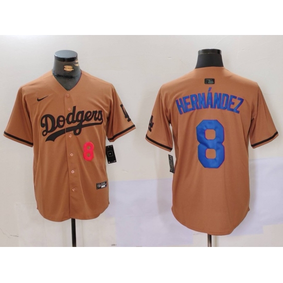 Men's Los Angeles Dodgers #8 Kike Hernandez Number Olive Cool Base Limited Stitched Jersey
