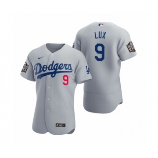 >Men's Los Angeles Dodgers #9 Gavin Lux Nike Gray 2020 World Series Authentic Jerseys