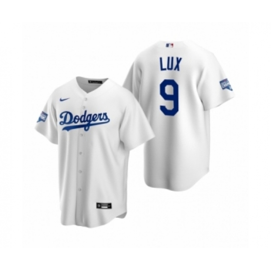 Men's Los Angeles Dodgers #9 Gavin Lux White 2020 World Series Champions Replica Jersey