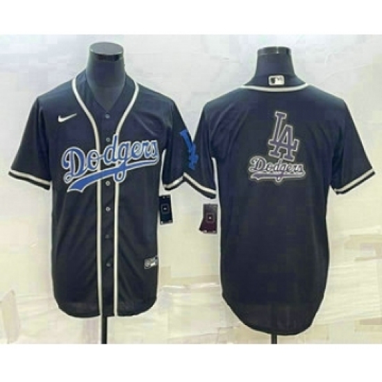 Men's Los Angeles Dodgers Big Logo Black Cool Base Stitched Baseball Jersey