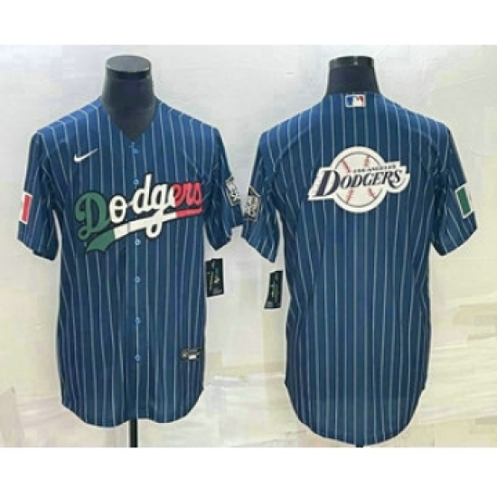Men's Los Angeles Dodgers Big Logo Navy Blue Pinstripe Stitched MLB Cool Base Nike Jersey5