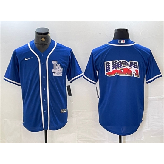Men's Los Angeles Dodgers Team Big Logo Blue Cool Base Stitched Baseball Jersey