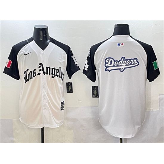 Men's Los Angeles Dodgers Team Big Logo White Black Mexico 2025 LA Gothic Style With Fernando Vapor Premier Limited Stitched Baseball Jersey