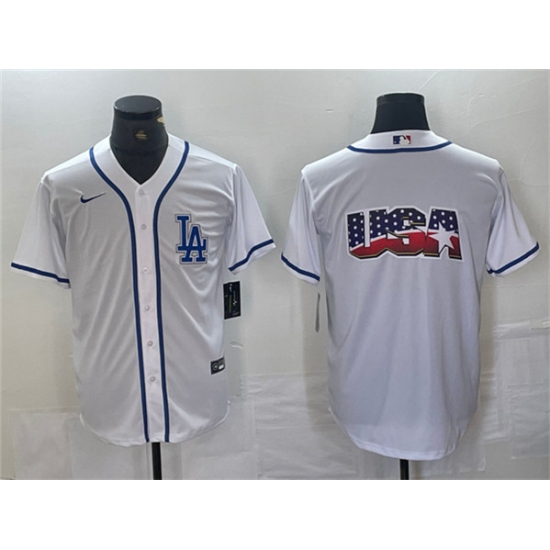 Men's Los Angeles Dodgers Team Big Logo White Cool Base Stitched Baseball Jersey