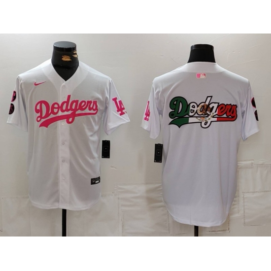 Men's Los Angeles Dodgers Team Big Logo White Pink Vin & Kobe Stitched Baseball Jerseys