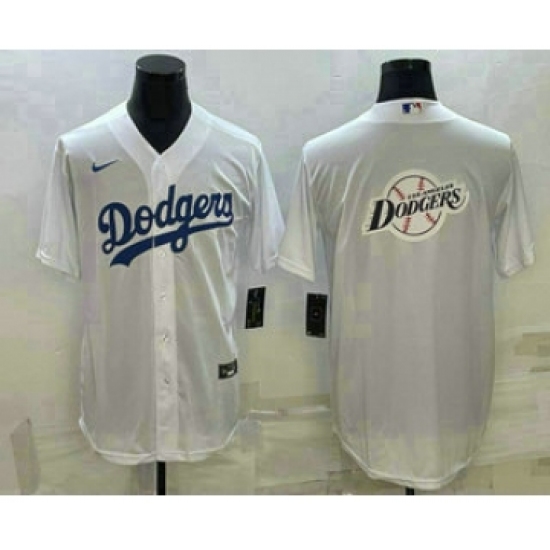 Men's Los Angeles Dodgers White Team Big Logo Cool Base Stitched Baseball Jersey1