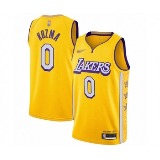 >Men's Los Angeles Lakers #0 Kyle Kuzma Swingman Gold 2019-20 City Edition Basketball Jersey