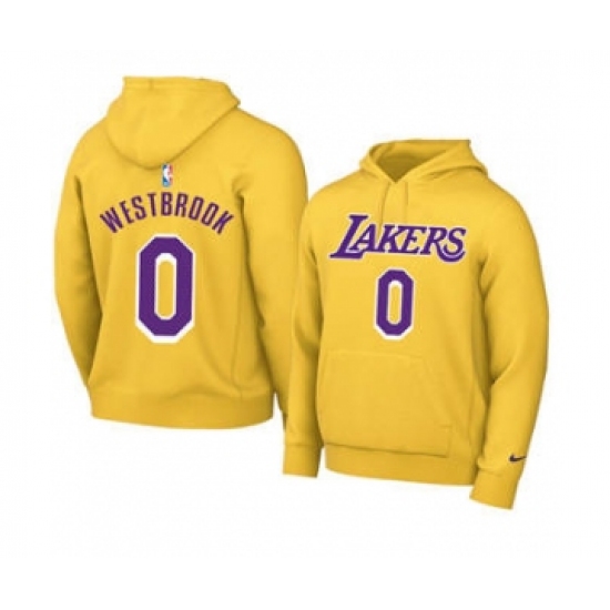 Men's Los Angeles Lakers #0 Russell Westbrook 2021 Yellow Pullover Basketball Hoodie