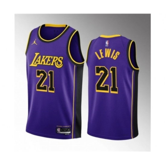 >Men's Los Angeles Lakers #21 Maxwell Lewis Purple 2023 Draft Statement Edition Stitched Basketball Jersey