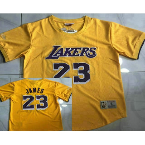 Men's Los Angeles Lakers #23 Lebron James Yellow Short Sleeved AU Throwback Jersey