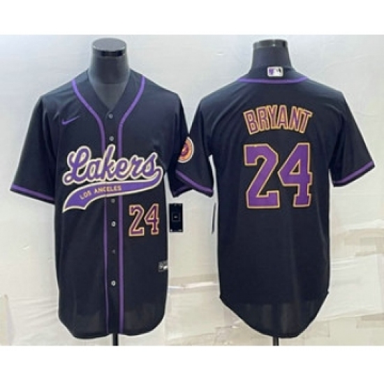 Men's Los Angeles Lakers #24 Kobe Bryant Number Black With Cool Base Stitched Baseball Jersey