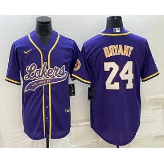 Men's Los Angeles Lakers #24 Kobe Bryant Purple With Cool Base Stitched Baseball Jersey