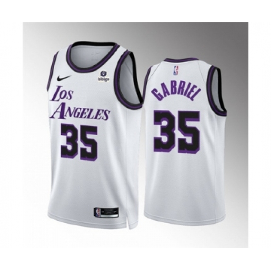 >Men's Los Angeles Lakers #35 Wenyen Gabriel White City Edition Stitched Basketball Jersey