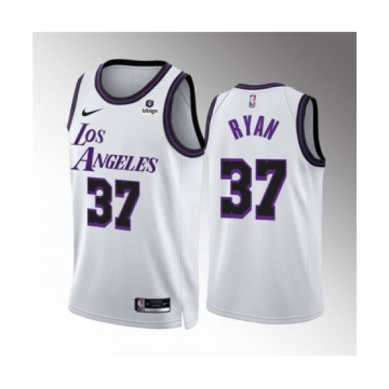 >Men's Los Angeles Lakers #37 Matt Ryan White City Edition Stitched Basketball Jersey