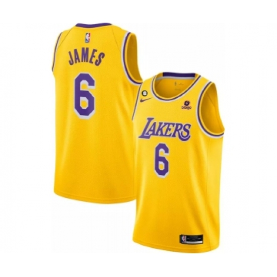Men's Los Angeles Lakers #6 LeBron James Yellow No.6 Patch Stitched Basketball Jersey