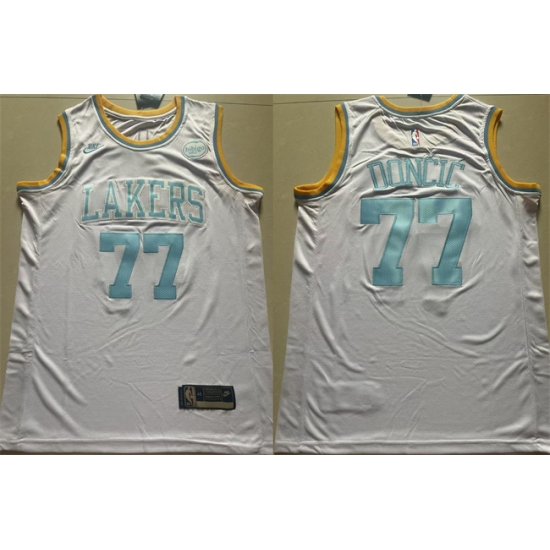 >Men's Los Angeles Lakers #77 Luka Doncic White 2025 Classic Edition Stitched Basketball Jersey