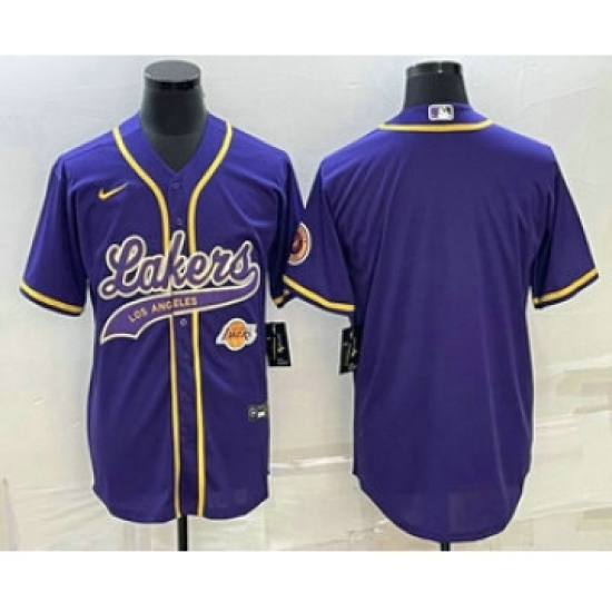 Men's Los Angeles Lakers Purple Big Logo Cool Base Stitched Baseball Jerseys