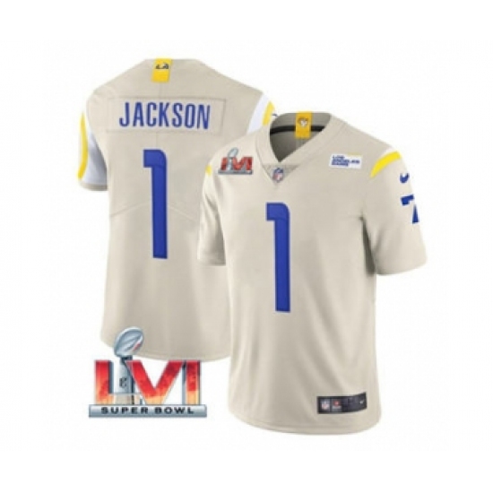 Men's Los Angeles Rams #1 Desean Jackson Bone 2022 Super Bowl LVI Vapor Limited Stitched Jersey