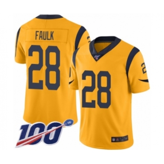 >Men's Los Angeles Rams #28 Marshall Faulk Limited Gold Rush Vapor Untouchable 100th Season Football Jersey