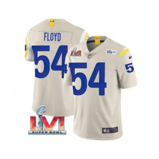 >Men's Los Angeles Rams #54 Leonard Floyd Bone 2022 Super Bowl LVI Vapor Limited Stitched Jersey