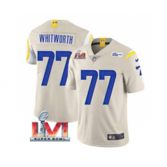 Men's Los Angeles Rams #77 Andrew Whitworth Bone 2022 Super Bowl LVI Vapor Limited Stitched Jersey